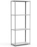 Полки стеллажей имеют стандартные размеры и могут крепиться к вертикальным стойкам с регулировкой по высоте. Разная высота стоек позволяет в сочетании с использование широкого выбора полок собирать стеллажи необходимых размеров и конфигураций. Конструкция позволяет быстро изменять высоту полок.