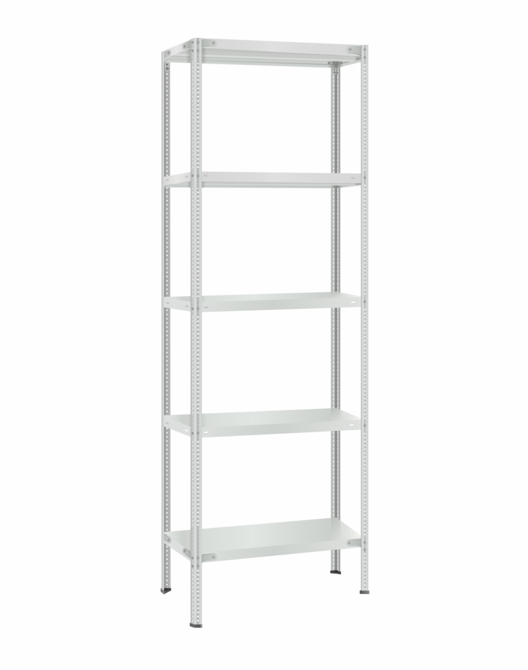 Полки МС Титан изготовлены из высокопрочной стали, покрыта полимерным порошковым покрытием светло серого цвета RAL 7035 типа шагрень