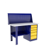 Слесарный верстак с пятью выдвижными ящиками. Телескопические направляющие. Защитный экран с возможностью установки аксессуаров.